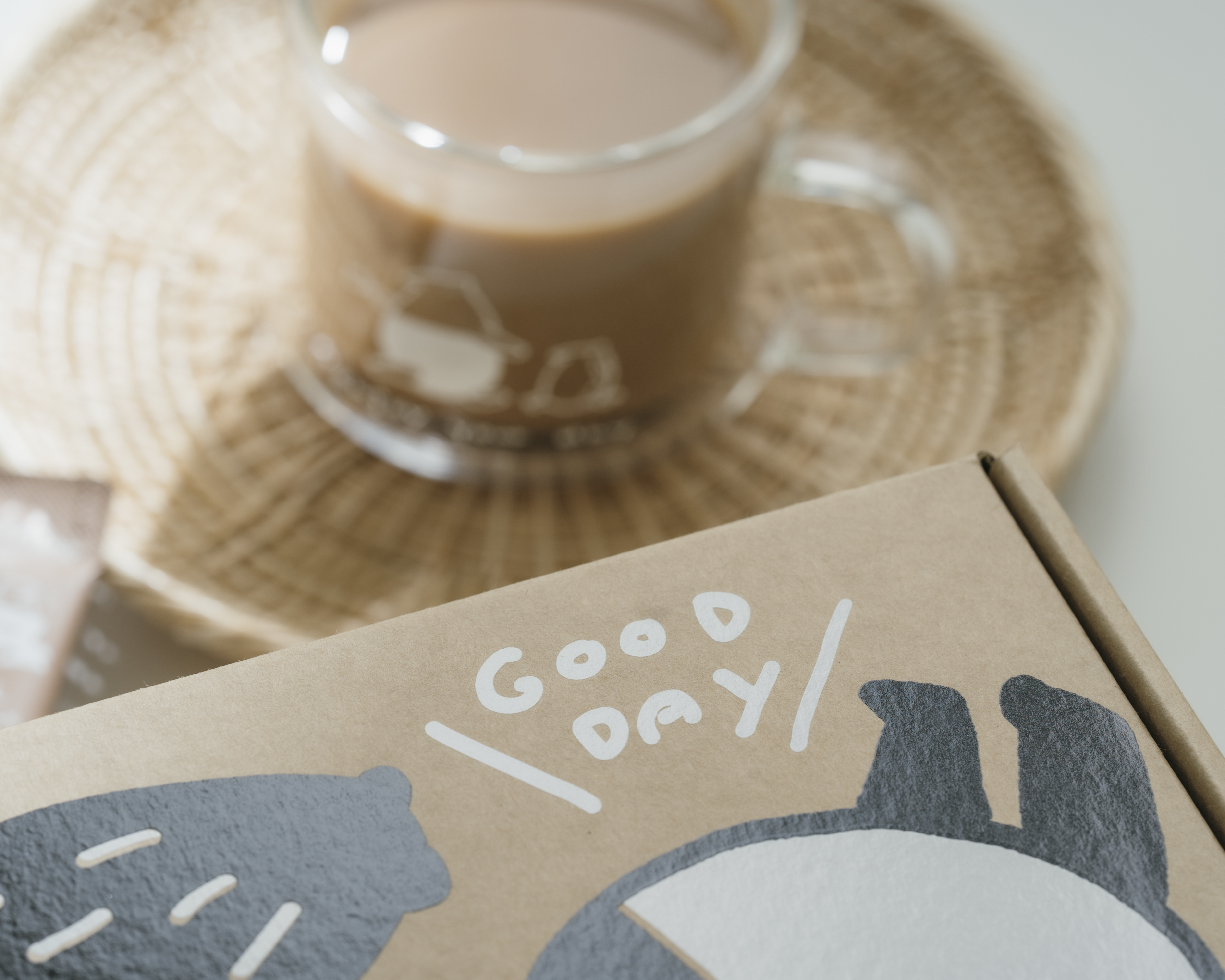 實用的圓弧把手杯 搭配紅茶牛乳包
