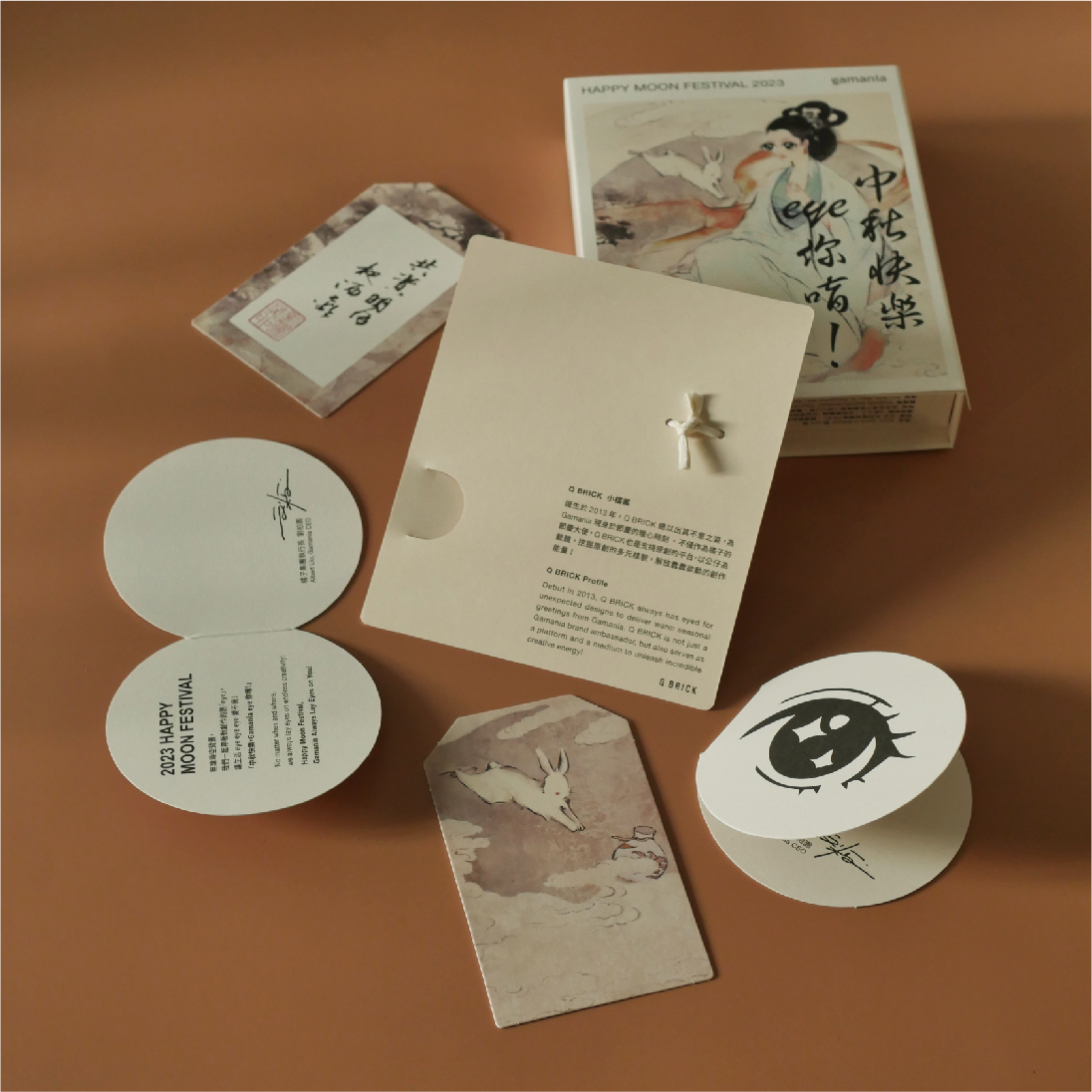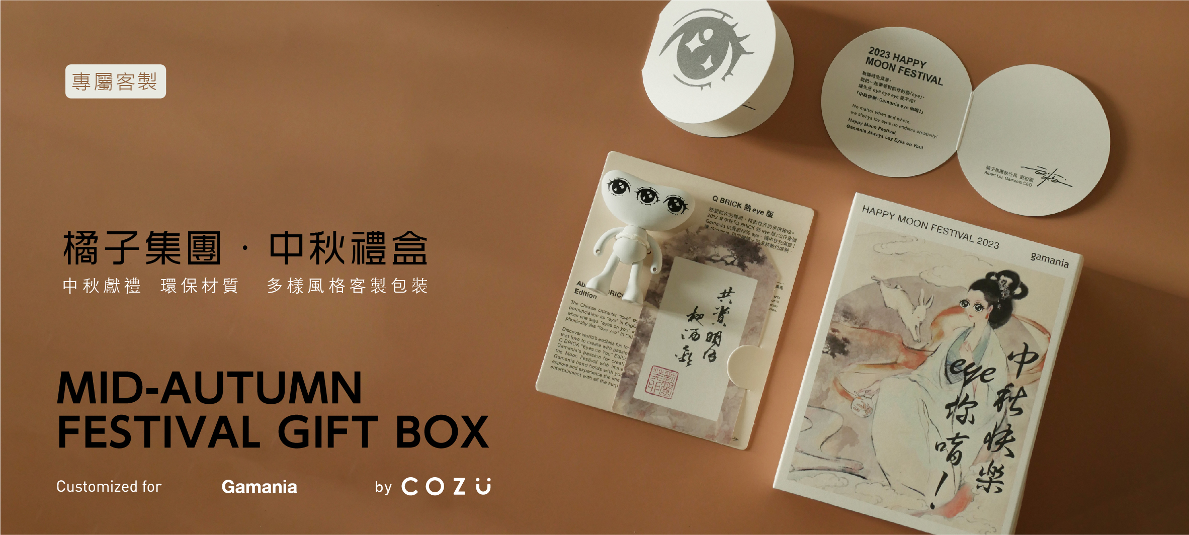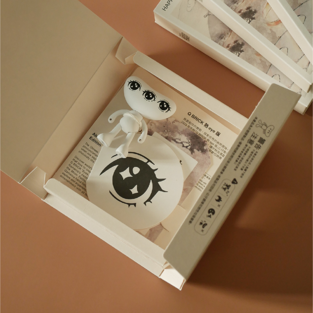 隨環保意識抬頭,COZU特別選用通過FSC環保認證的「瑞典棉卡」作為此次包裝紙材,進一步推崇環保概念的包裝。結合 ACGN 概念為 Q Brick 裝上 2D 嫦娥眼,包裝視覺設計不只別上動漫嫦娥閃亮的雙瞳,更如科幻人物般長出第三隻眼,因此將眼睛元素在整體視覺突出表現,傳遞橘人對創意生活的熱 eye。