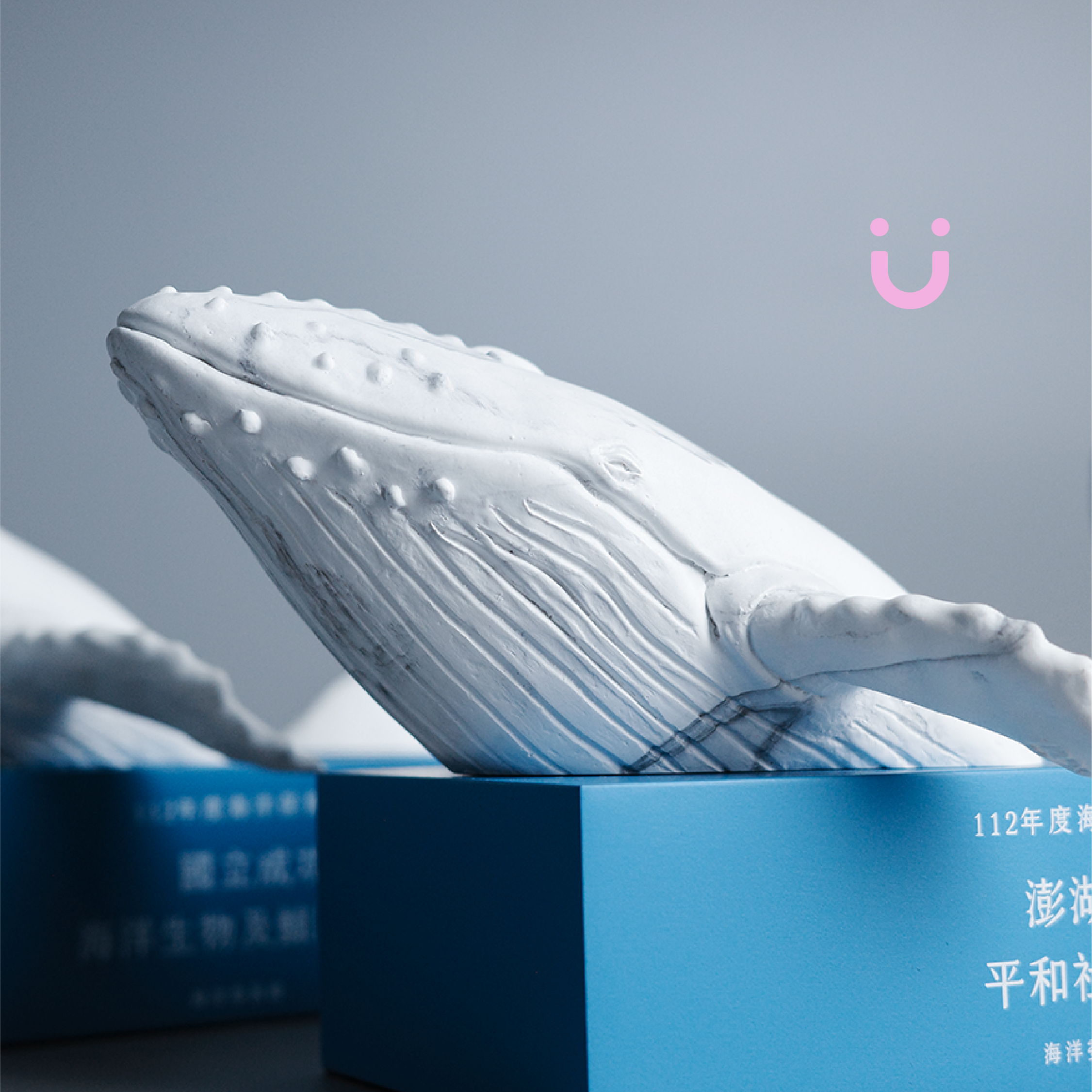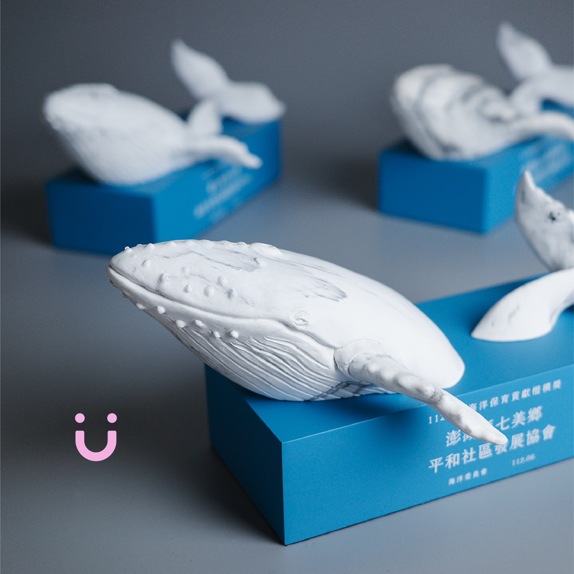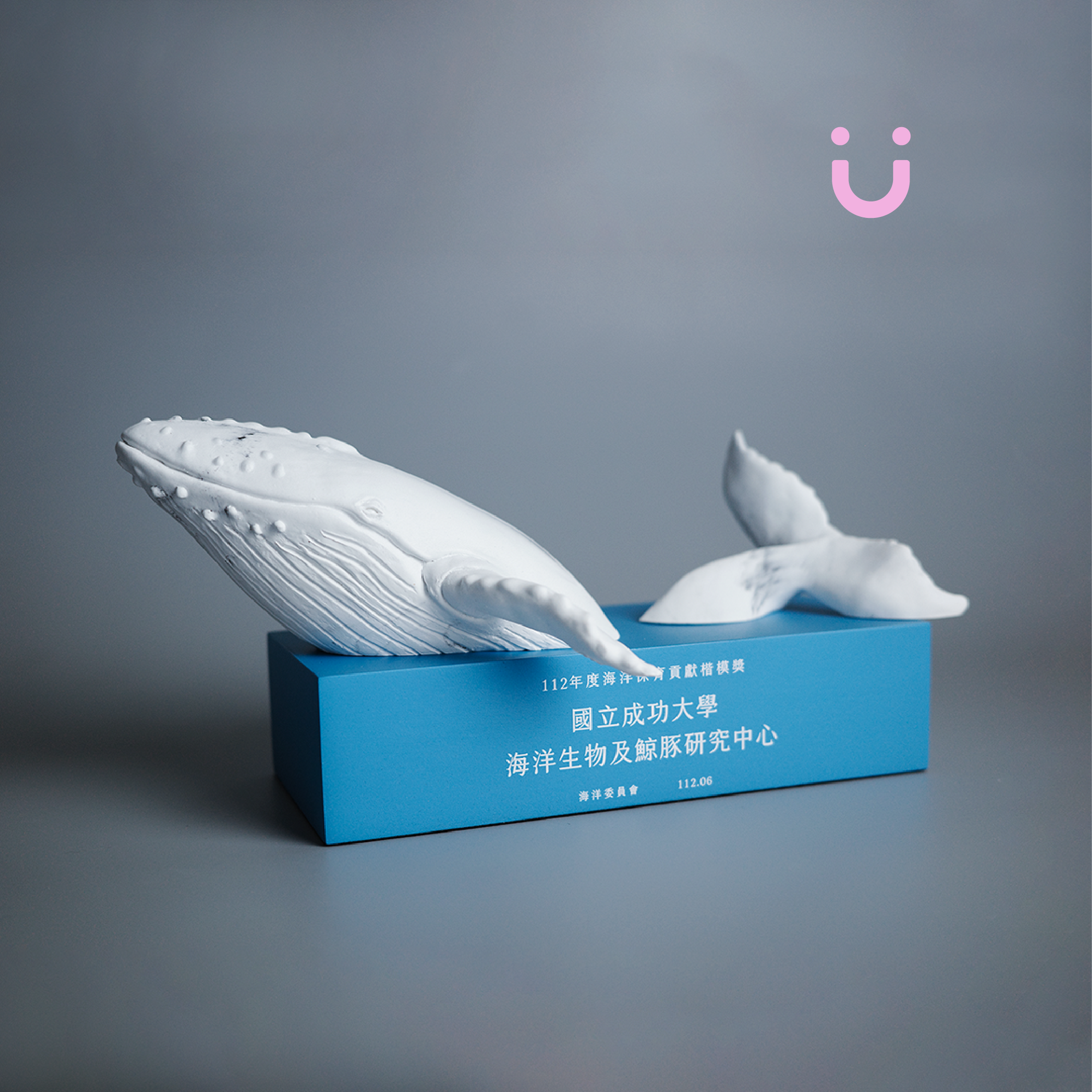 鯨魚浮出水面的設計也象徵著獲獎者對於守護海洋的信念及決心。