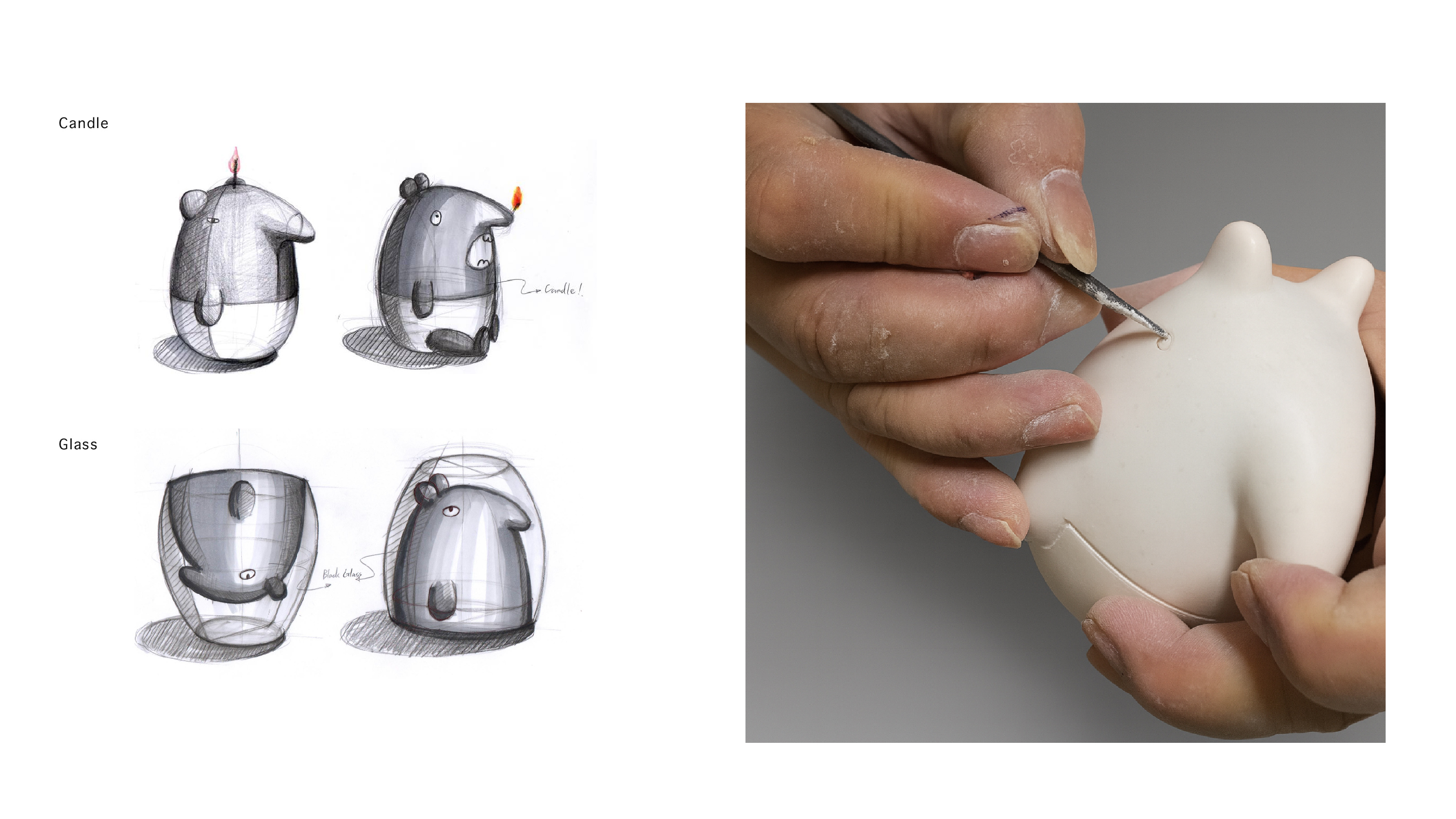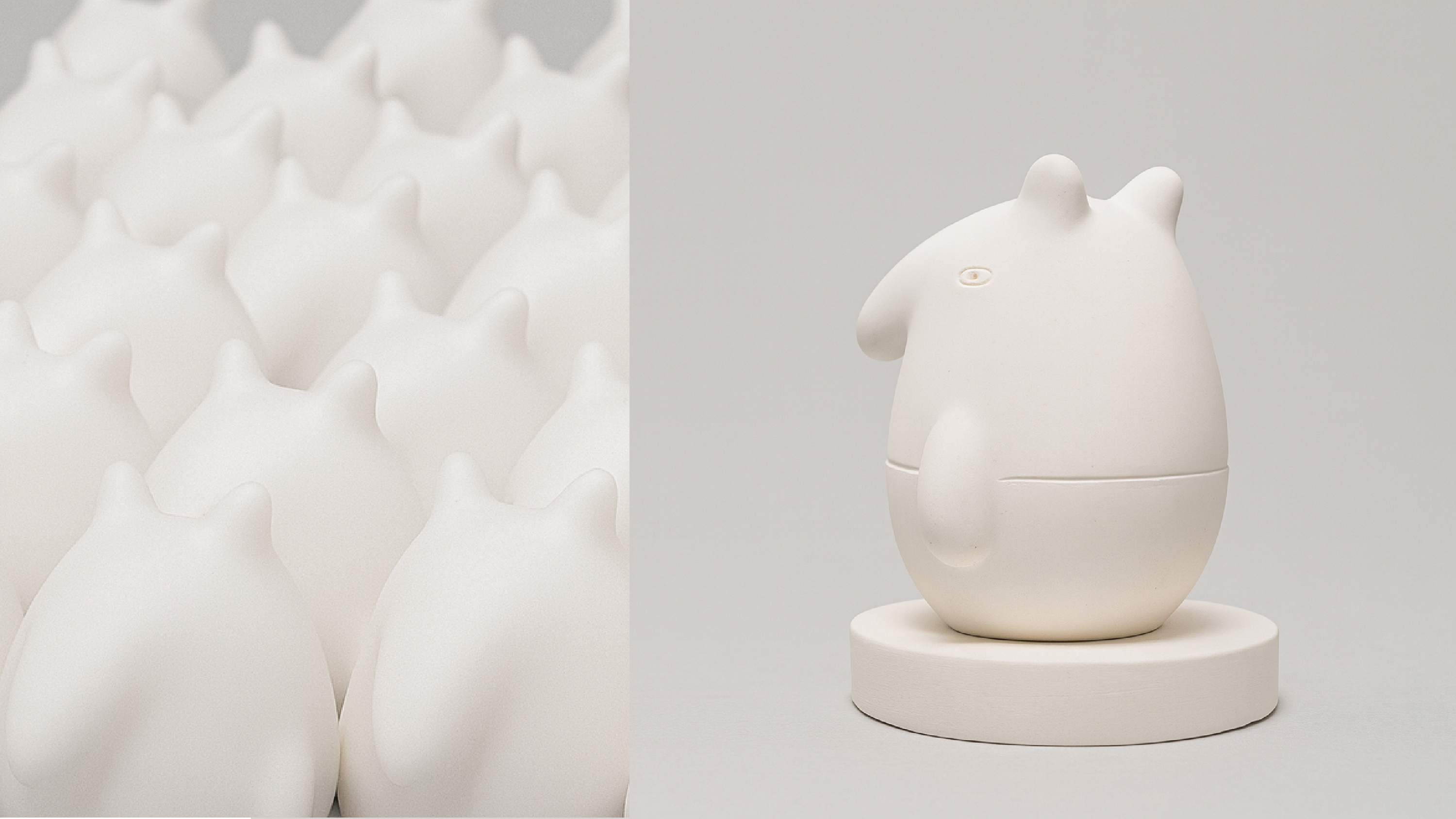 由台灣職人自手繪概念起步,逐步雕出圓潤身形與憨厚表情,
