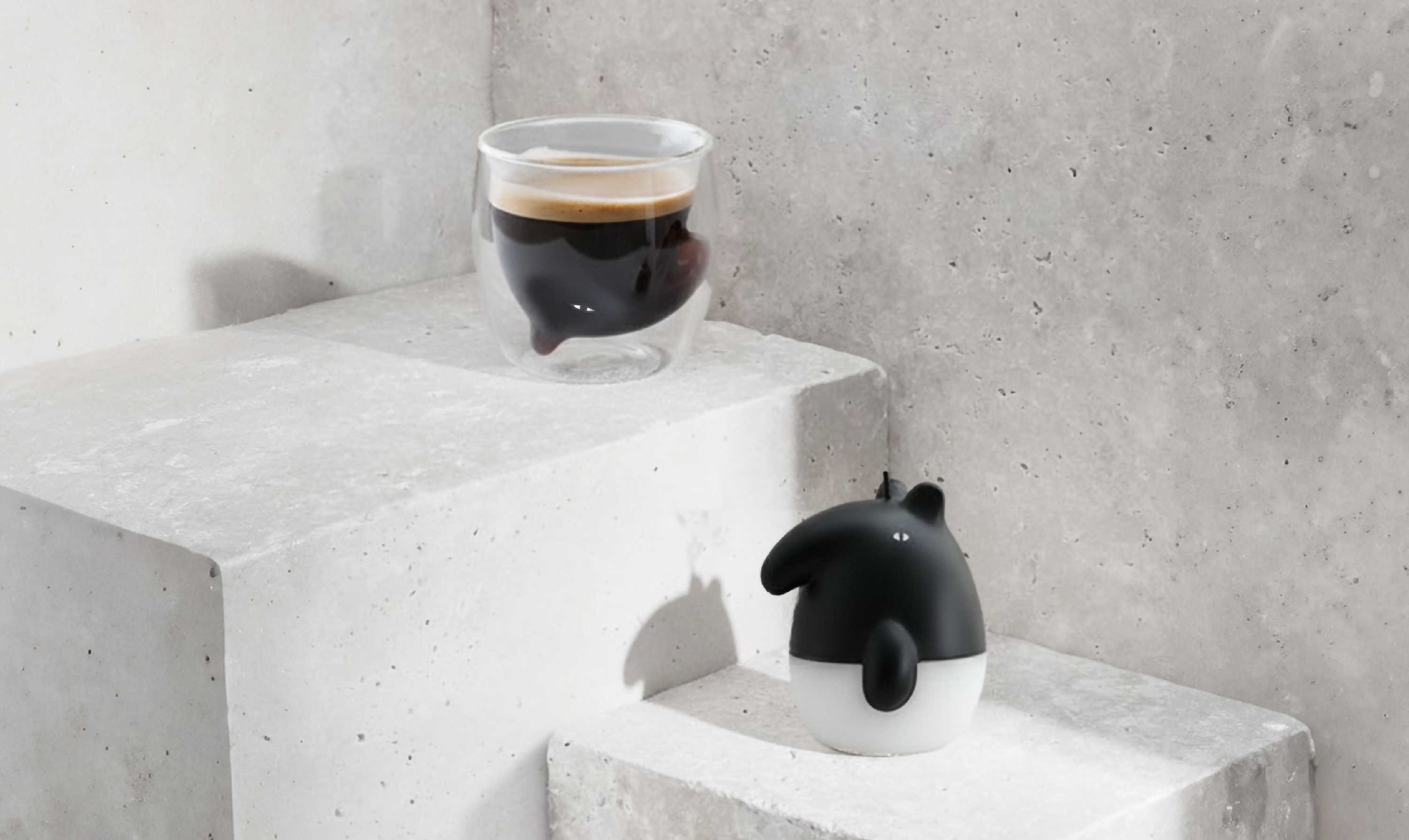 同時,飲品的色澤在透明玻璃中與馬來貘造型互相映襯,