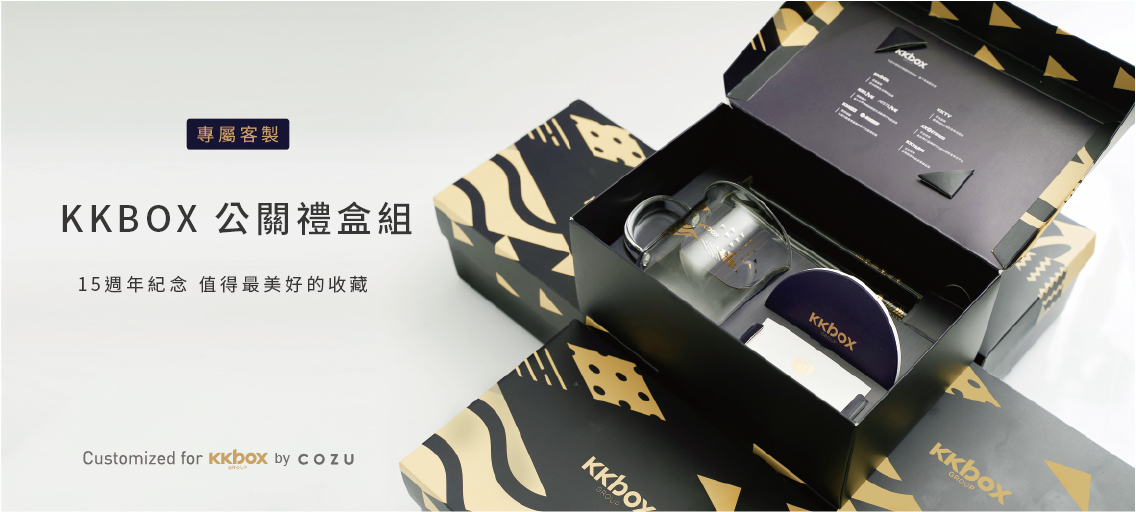 這次與KKBOX合作,將15週年的視覺元素結合在禮贈品禮盒上,每一個品項都是完美的搭配,