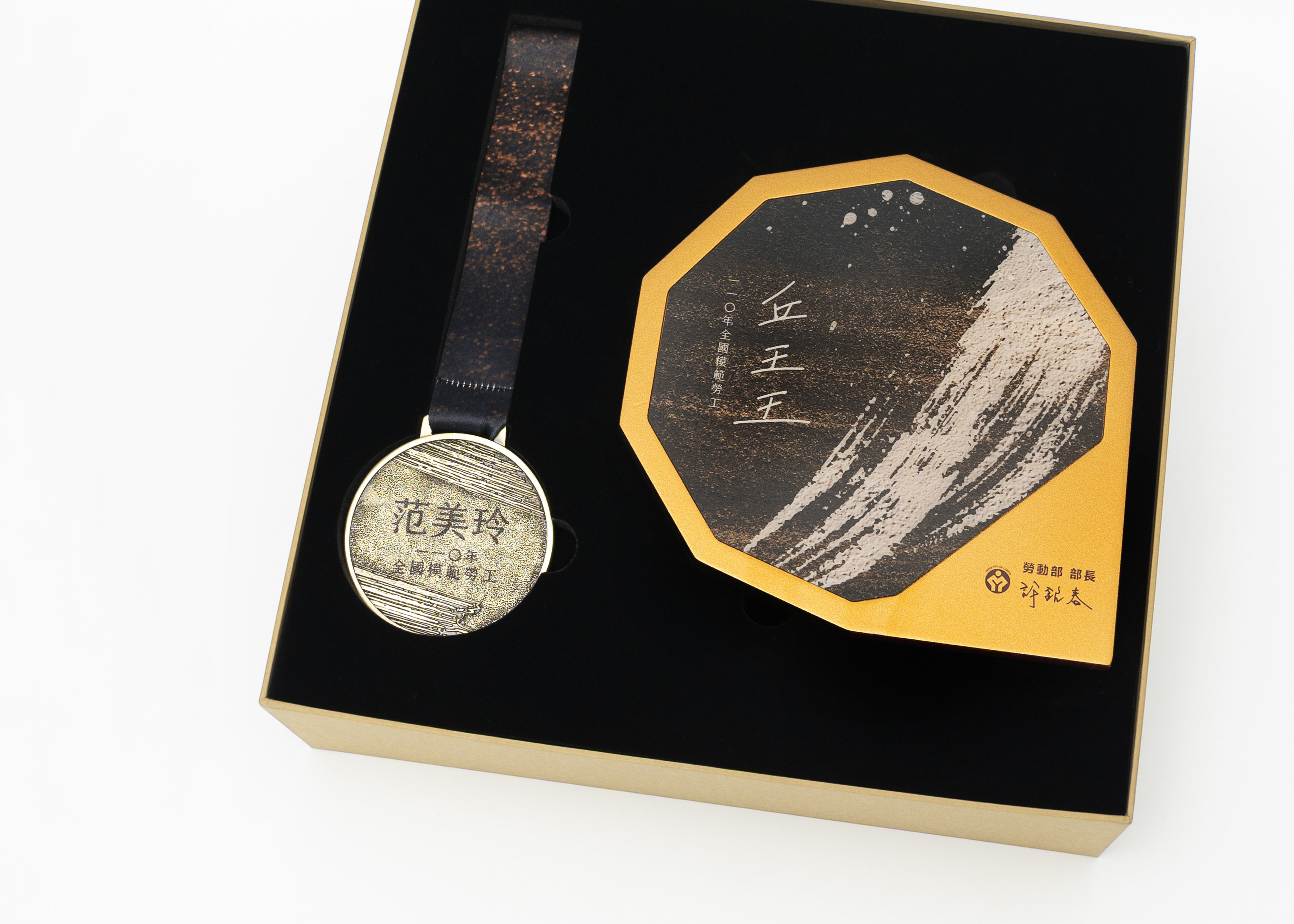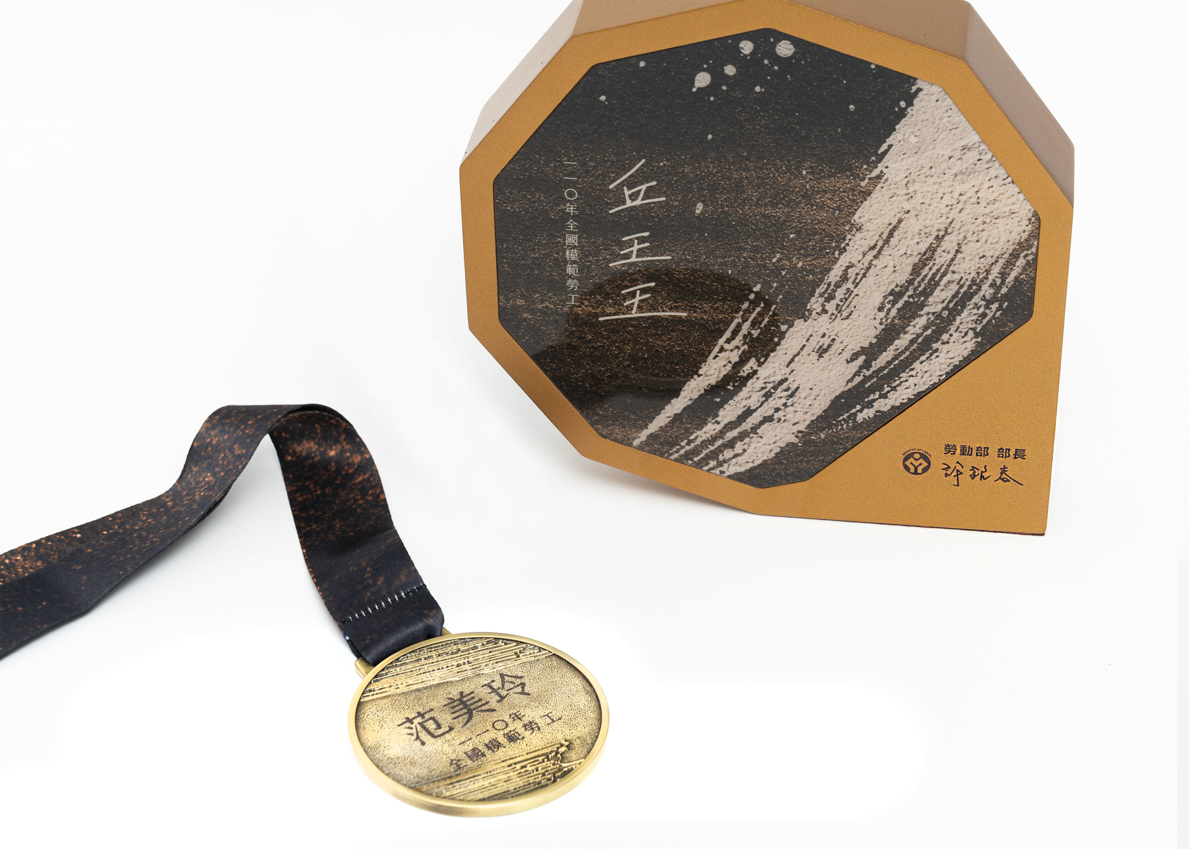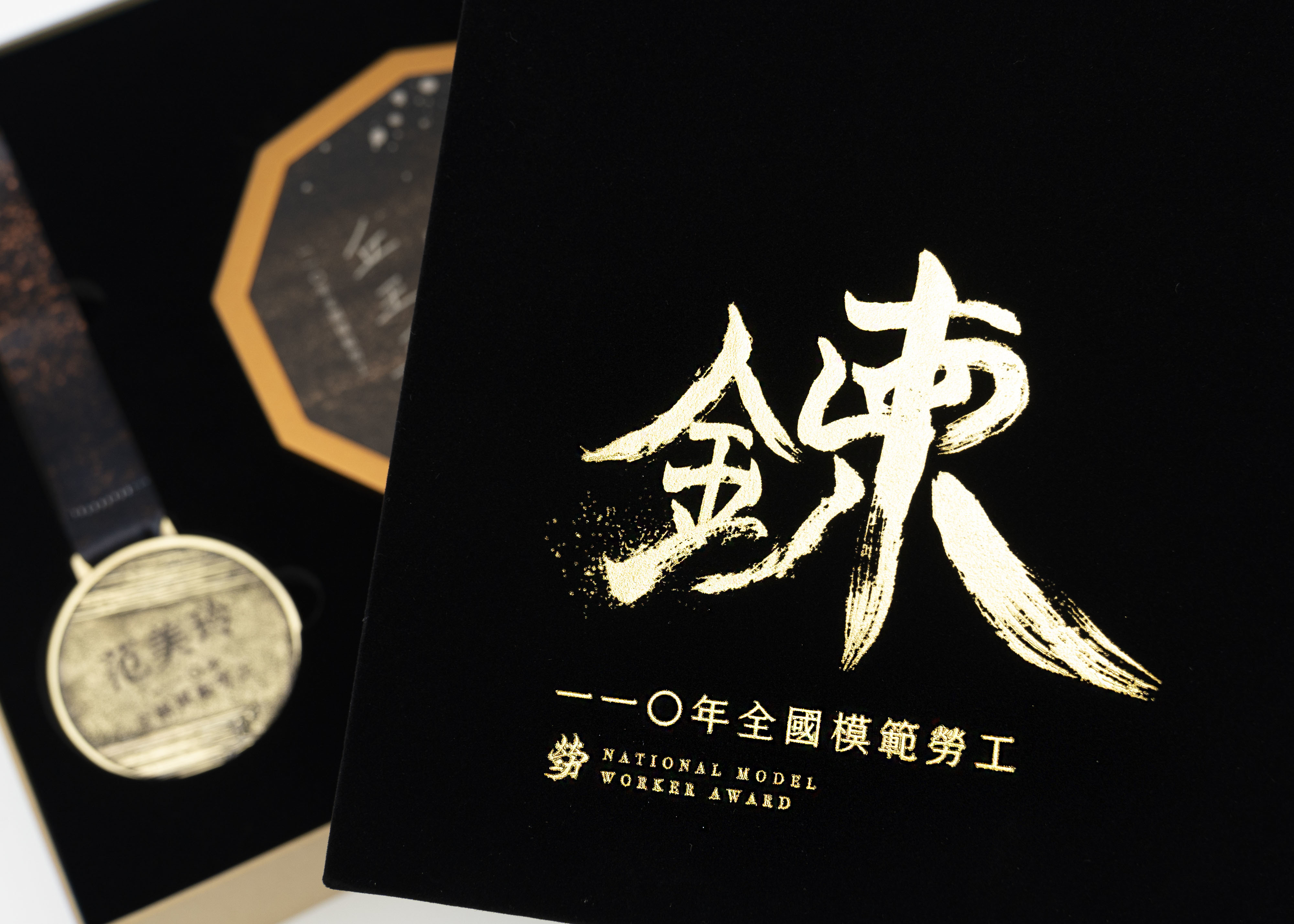 (圖:110年度 全國模範勞工獎座、獎牌細節)